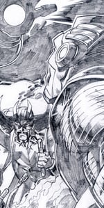 This was written by Dan Abnett and Andy Lanning, penciled by me and inked by Jamie Mendoza. IRON MAN and THOR face off against THE HIGH EVOLUTIONARY. THE HIGH EVOLUTIONARY, with the help of villains like the CRIMSON DYNAMO, ULIK, and DIABLO, attempts to create a techno-god out of Tony Stark.